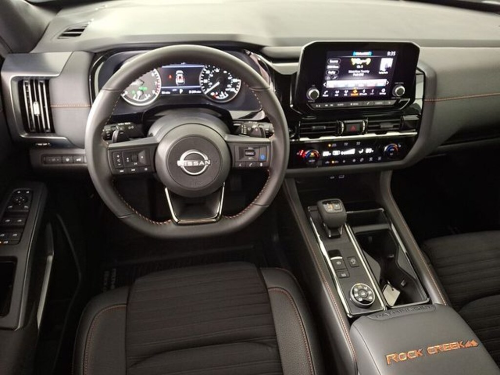 2025 Nissan Pathfinder Rock Creek Pathfinder Rock Creek, 4WD, Gun Metallic, 3rd row seats: bench, Auto High-beam Headlights, Brake assist, Front fog lights, Heated door mirrors, Heated front seats, NissanConnect featuring Apple CarPlay and Android Auto, Power driver seat, Power Liftgate.