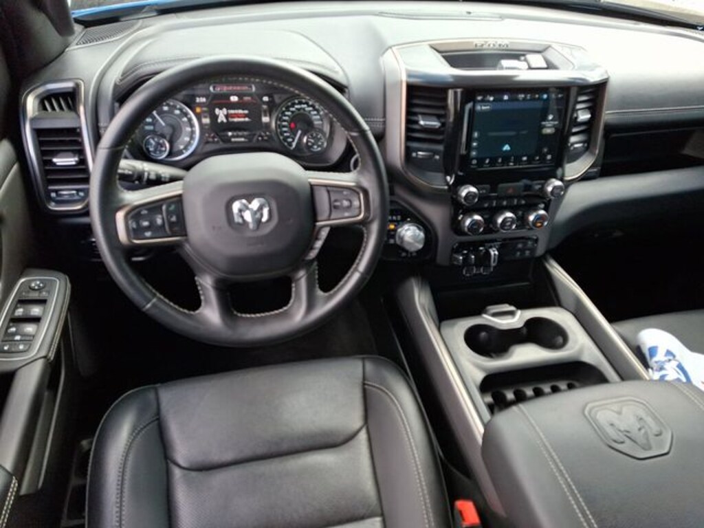 1500 Rebel, 4D Crew Cab, HEMI 5.7L V8 Multi Displacement VVT, 4WD, Black w/Leather Trimmed Bucket Seats, 8.4" Touchscreen Display, Air Conditioning ATC w/Dual Zone Control, Apple CarPlay, Auto-Dimming Exterior Driver Mirror, Auto-dimming Rear-View mirror, GPS Navigation, Heated Steering Wheel, Integrated Voice Command w/Bluetooth, Mopar Black Tubular Side Steps, ParkView Rear Back-Up Camera, Power Adjustable Pedals, Power driver seat.