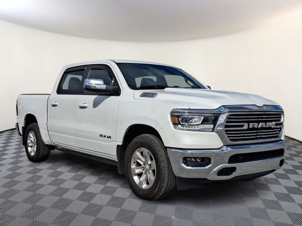 2023 Ram 1500 Laramie HEMI 5.7L V8 Multi Displacement VVT eTorque, 4WD, Ivory White Tri-Coat Pearlcoat, Black Leather, 12" Touchscreen Display, 2nd Row In Floor Storage Bins, 4G LTE Wi-Fi Hot Spot, Adaptive Cruise Control w/Stop & Go, Advanced Safety Group, Apple CarPlay, Auto High Beam Headlamp Control, Bed Utility Group, Blind Spot & Cross Path Detection, Class IV Receiver Hitch, Connected Travel & Traffic Services, Connectivity - US/Canada, Disassociated Touchscreen Display, Electric Shift-On-Demand Transfer Case, Foam Bottle Insert (Door Trim Panel), For Details, Visit DriveUconnect.com, For More Info, Call 800-643-2112, Front Door Accent Lighting, Front LED Fog Lamps, Global Telematics Box Module (TBM), Google Android Auto, GPS Antenna Input, GPS Navigation, harman/kardon 19 Speaker Premium Sound, HD Radio, Integrated Center Stack Radio, Integrated Voice Command w/Bluetooth, Lane Keep Assist, Laramie Level B Equipment Group, LED Reflector Headlamps, Memory seat, MOPAR 4 Adjustable Cargo Tie-Down Hooks, MOPAR Spray In Bedliner, Navigation System, Parallel & Perp Park Assist w/Stop, ParkSense Front/Rear Park Assist w/Stop, Pedestrian Emergency Braking, Pick-Up Box Lighting, Quick Order Package 27H Laramie, Radio: Uconnect 5 Nav w/12.0" Display, Rain Sensitive Windshield Wipers, Rear Door Accent Lighting, Rear Power Sliding Window, Rear Underseat Compartment Storage, Rear Window Defroster, Remote Tailgate Release, SiriusXM Radio Service, SiriusXM w/360L, Surround View Camera System, Tailgate Ajar Warning Lamp, USB Host Flip.