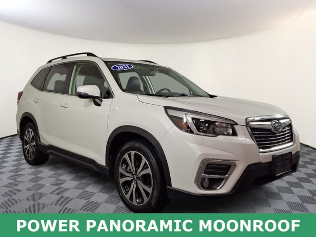 2021 Subaru Forester Limited Forester Limited, Crystal White Pearl, Black Leather, Auto High-beam Headlights, Front fog lights, Heated front seats, Power driver seat, Power Liftgate, Power moonroof: Panoramic.